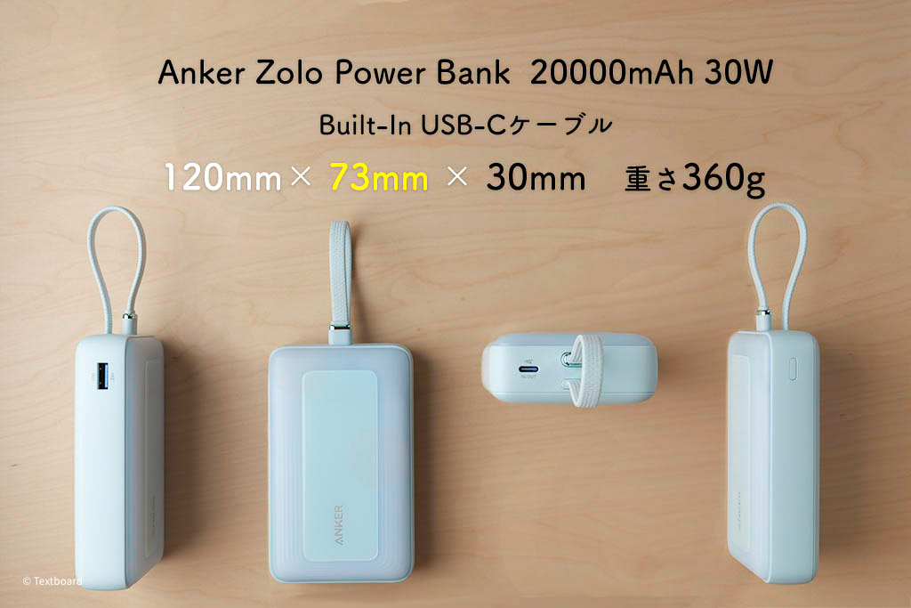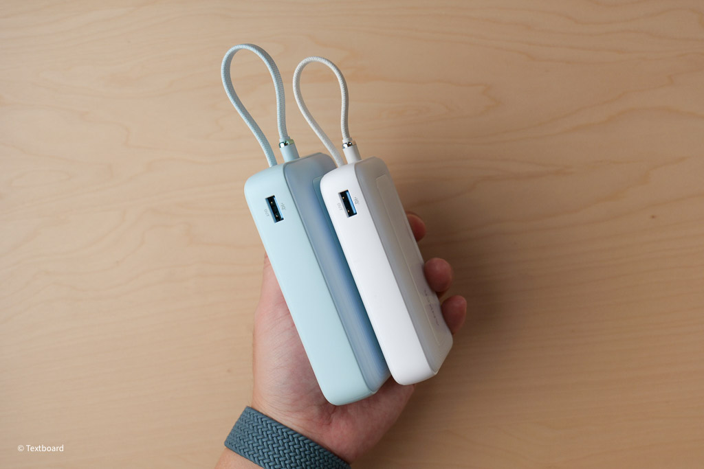 大容量・30W出力・ケーブル一体型。スマホやタブレットを複数回充電でき、スマホやモバイルゲーム機など、日常使いや出張・小旅行用途での利便性と、ケーブルを別に持ち歩かなくていい点は特に便利です。