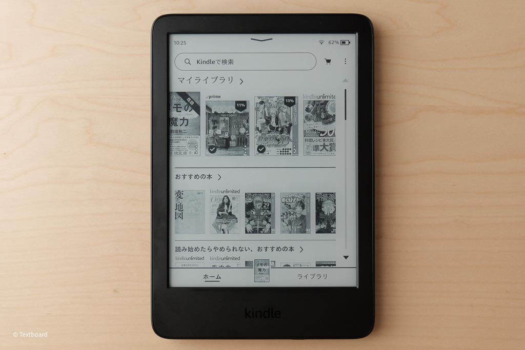 また容量は10GB以上残っている状態のKindleです。スマホやPCでウェブブラウジングするようなサクサクではありませんが、一番の目的である読書については今のところ不満はありません。