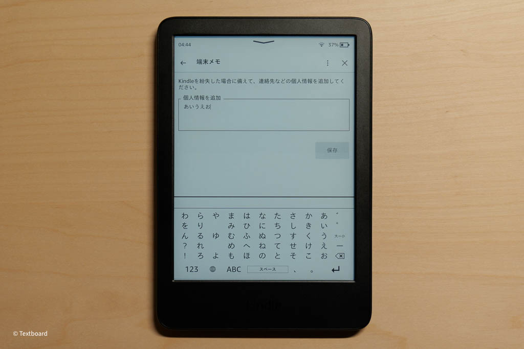 Kindleを紛失した場合の機能で、連絡先や個人情報などを追加する項目。