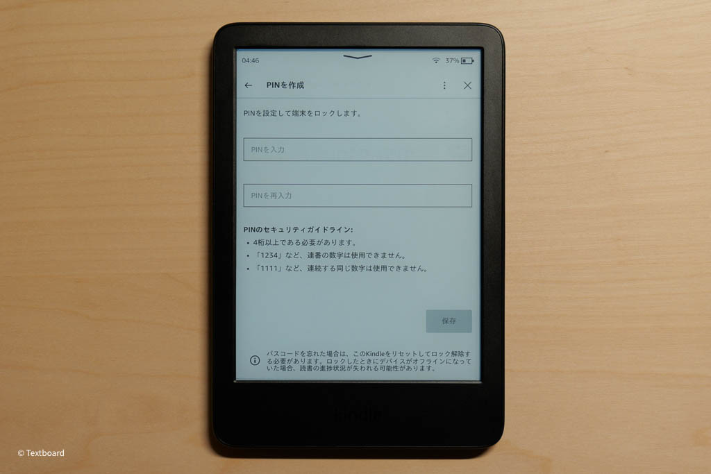 設定するとKindleをスリープから復帰する際、PINコードを求められます。