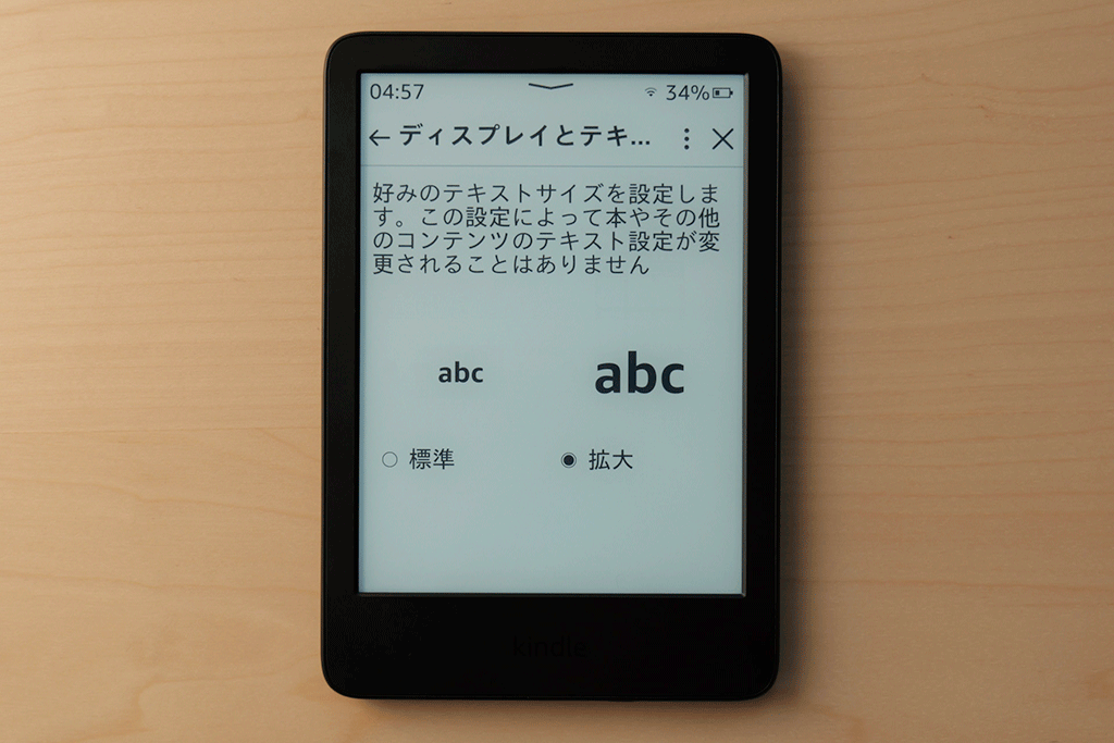 読んでいる本の文字以外の表示が大きくなります。大きさは標準と拡大があり読んでいる本の文字の大きさは変わりません。