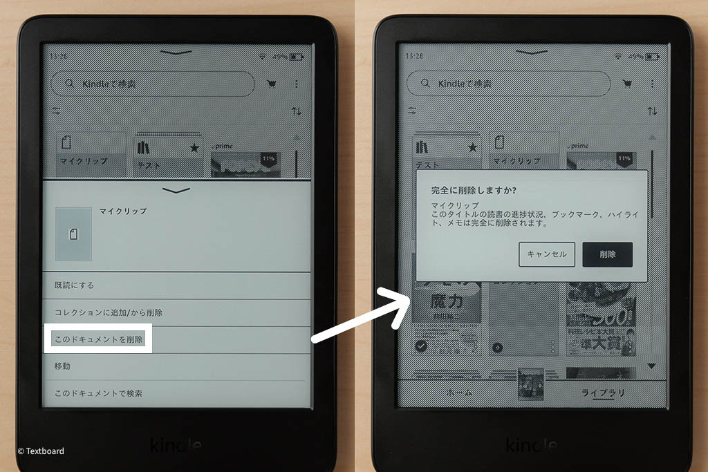 ライブラリのマイクリップとは、ハイライト、メモ、ブックマークをした記録が一覧で見れるフォルダーです。マイクリップをライブラリから削除すると、この記録は全て消えます。記録が消えるだけで、本の中のハイライトやメモなどは残っています。