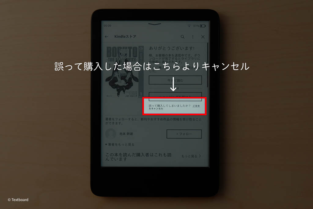 購入が簡単なだけあって、購入後はキャンセルできるリンクが出てきます。全ての書籍で対象かわかりませんが、自分の場合ほとんど出ています。