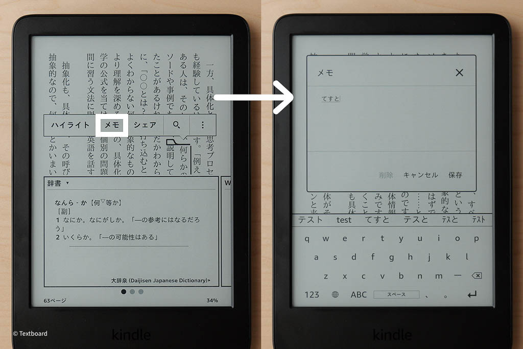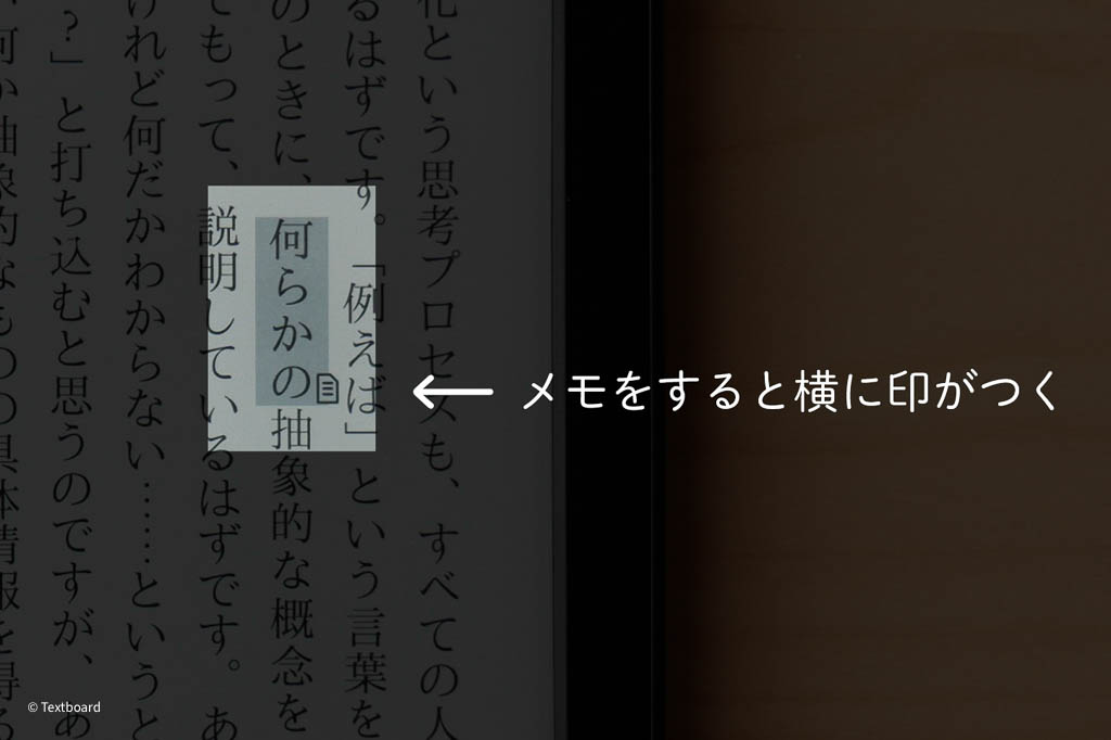 前章で紹介したハイライトした箇所を再度タップするとメモができます。