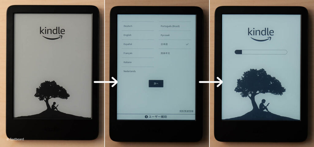電源を入れ立ち上げると言語を選択し次へ、進捗バーでのロードが始まる。