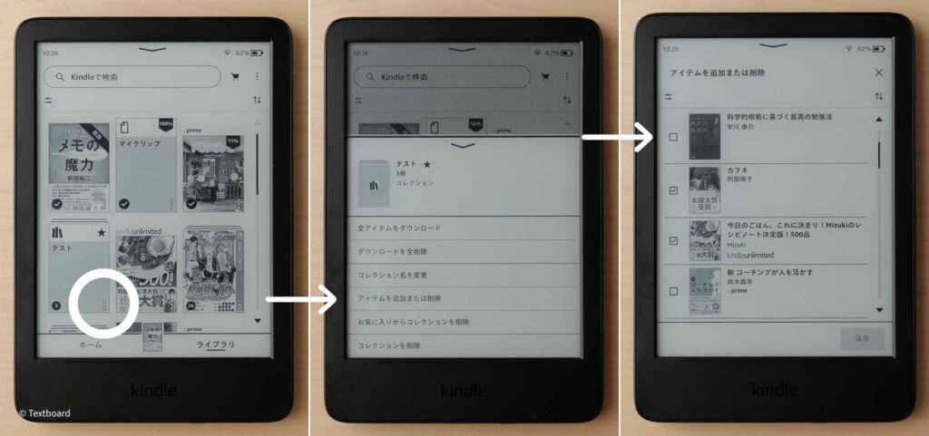 本の表紙にある3点マーク > コレクションに追加/削除 > 追加したフォルダーにチェックし保存
