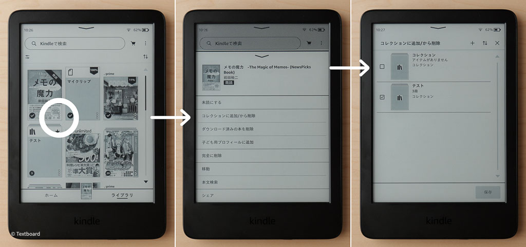 ライブラリ内で作成するコレクションとは本を整理し、自分が気に入っている本をフォルダーに入れる機能のことです。大量に増えた本をカテゴリー分けしたり、まとめたりと便利機能。