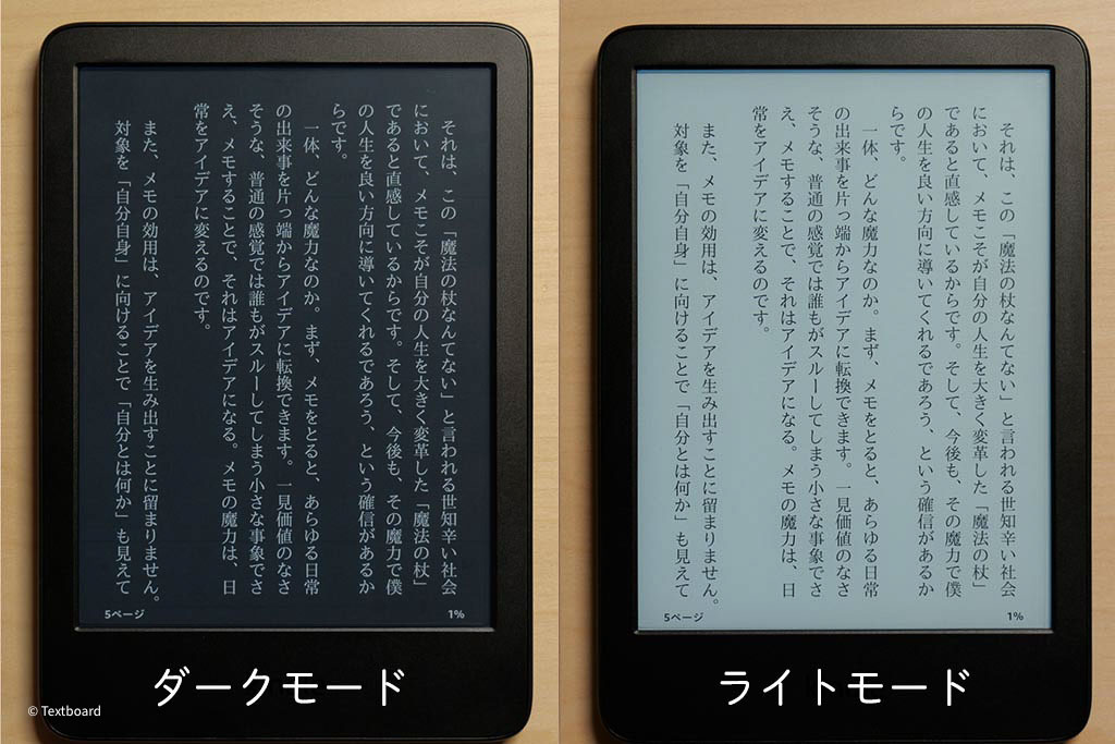 目に優しいと謳い文句は嘘じゃないなーと感じました。スマホやPCモニターなどの液晶画面は文字が「液晶フィルムの下に文字がある」ある感じで、Kindleは「表面に文字が印字してある印象」を受けました。