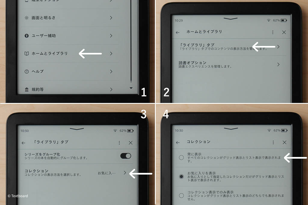 ホームとライブラリ > 読書オプション > コレクション > 常に表示orお気に入り表示