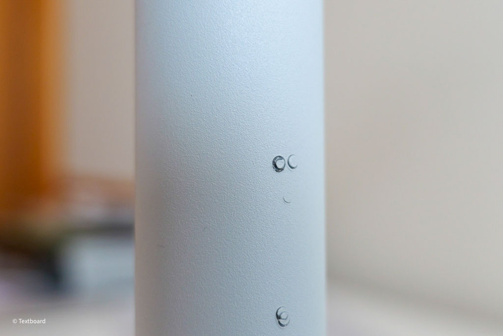 旧型は支柱にアームの高さを固定するストッパーがあり、ネジで固定する仕様で支柱に必ず傷がつきます。新型は傷がつかない仕様になりました。