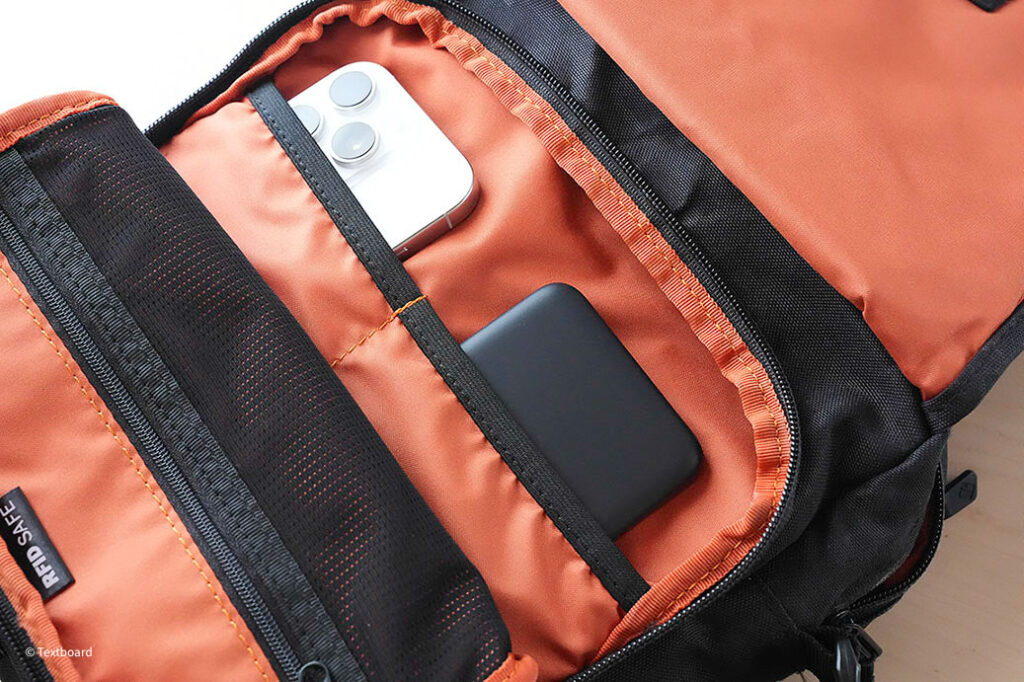 薄型のモバイルバッテリーなのでバッグのポケットと相性がよく、カード型でポケットに入れやすい。