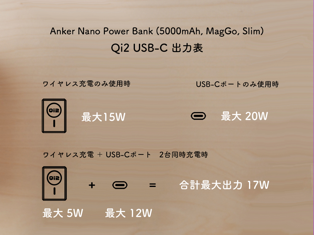 最大17W (USB-C:最大12W / ワイヤレス:最大5W) |