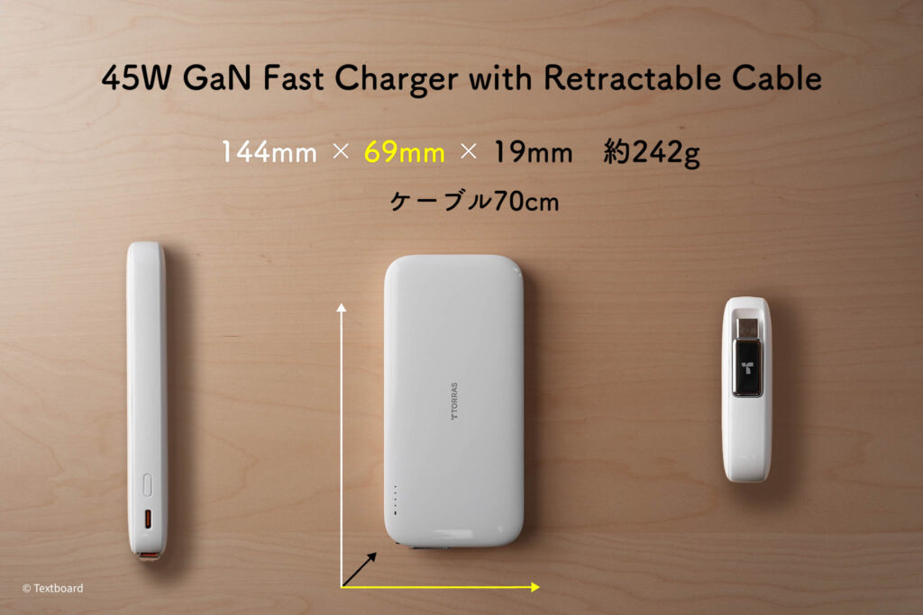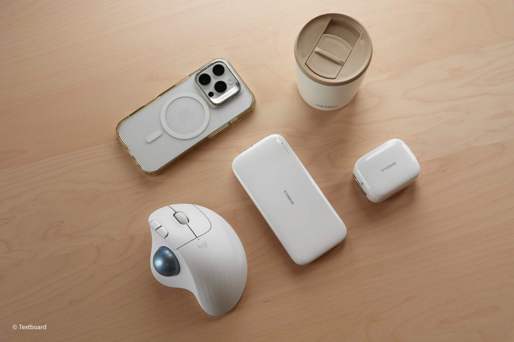 TORRASのモバイルバッテリーと45W充電器はホワイトは同じ質感でガジェット色が強くなく、シンプルで可愛い雰囲気がある。