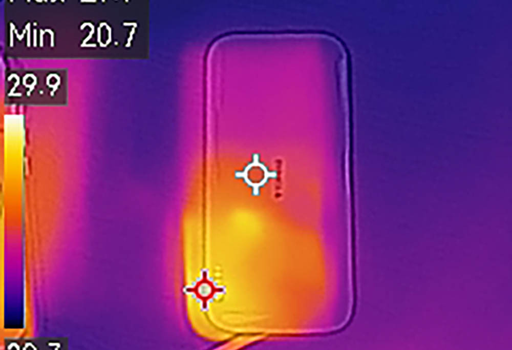 熱くなるのはLEDがある付近。それでも触っても大丈夫な熱さでスマホの方が熱かった。