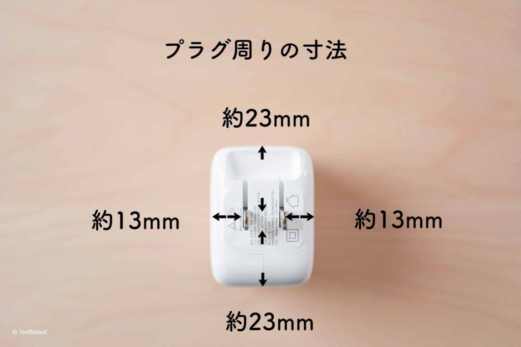 プラグに挿す場合は壁コンセントであれば、普通のコンセントプラグと併用で干渉はなかった。電源タップの場合は干渉する場合が多いため、チェックが必要。