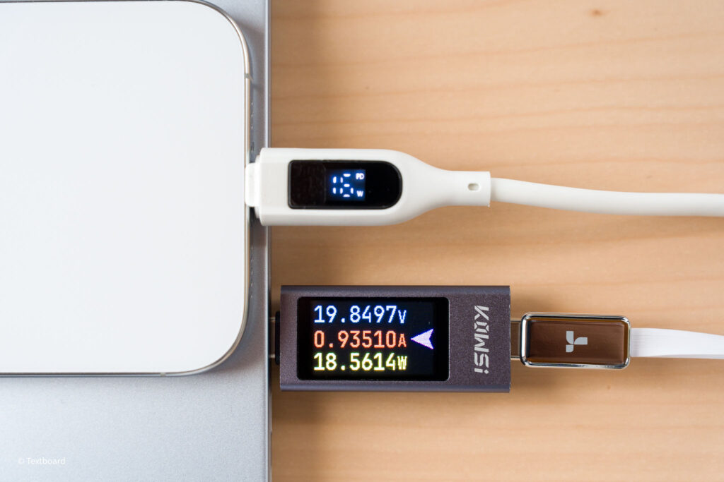 2台同時充電するとPCの方は20W近くまで出力、スマホの方は16W出力だった。TORA-ICEONと言う機能が搭載されており、出力を自動で振り分けてくれるらしい。